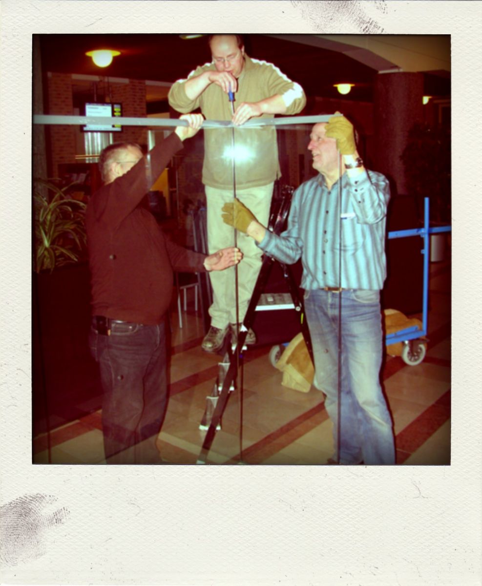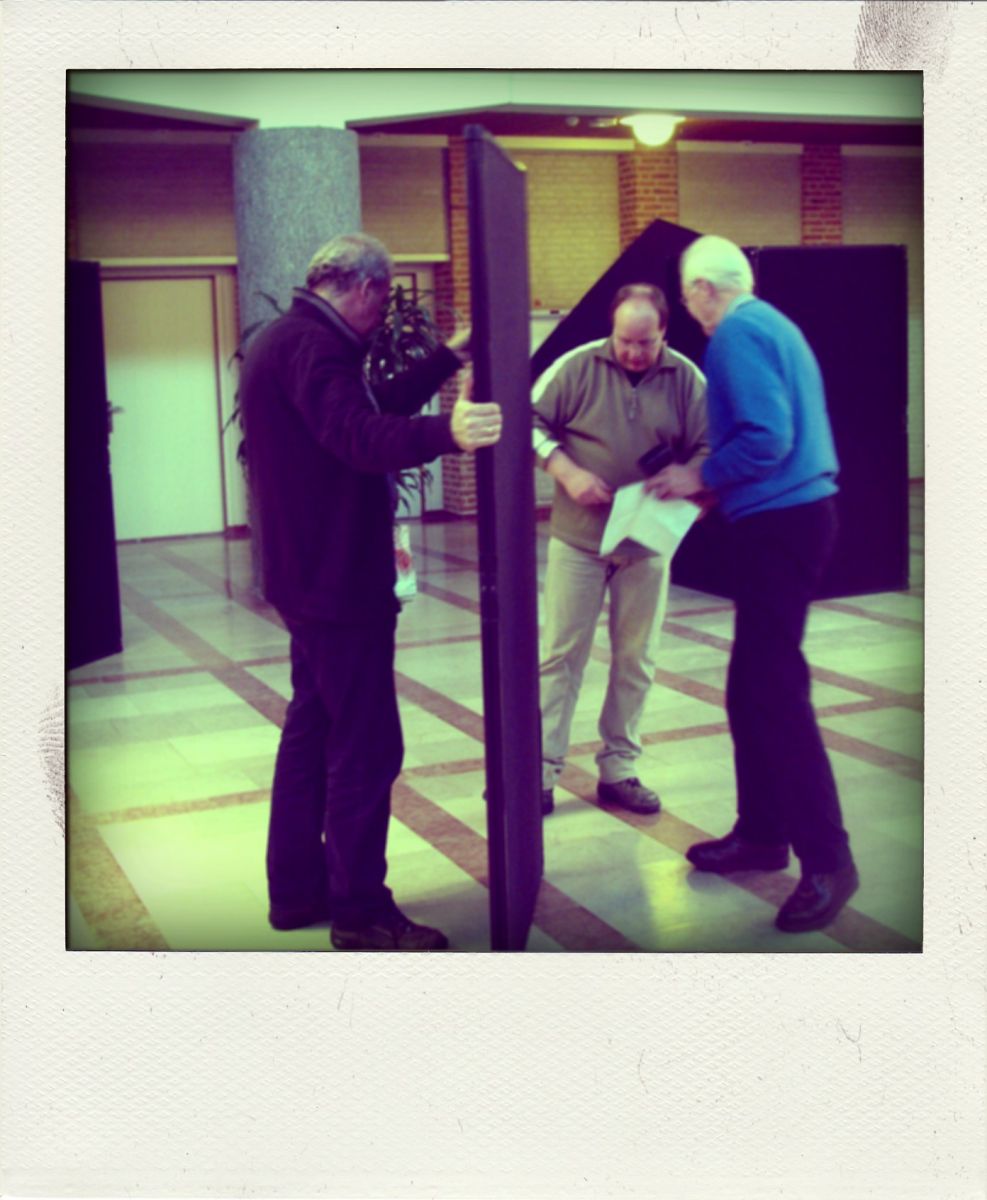 De panelen stonden, de foto's hingen er in de gewenste volgorde aan.