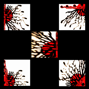 Foto is digitaal in 2-en geknipt en via kopieren en plakken en schuiven in dit patroon geplaatst.