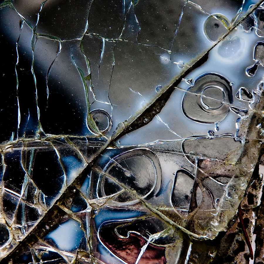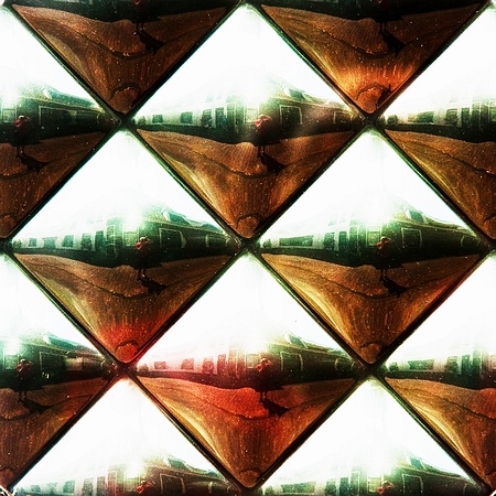 De vormen zijn niet geknipt of geplakt, en de reflectie van de fotograaf is echt en wordt ''herhaald'' door de vorm van de ruit (iets bollend)