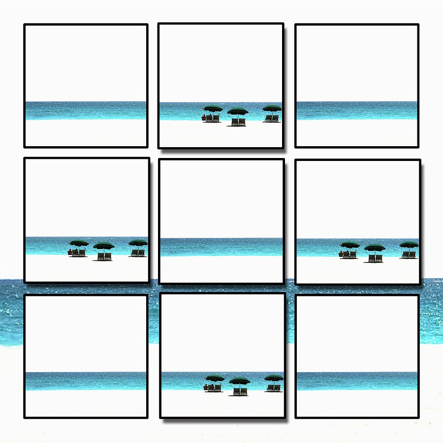 Door bewerking zijn lucht en strand gereduceerd tot witte vlakken.