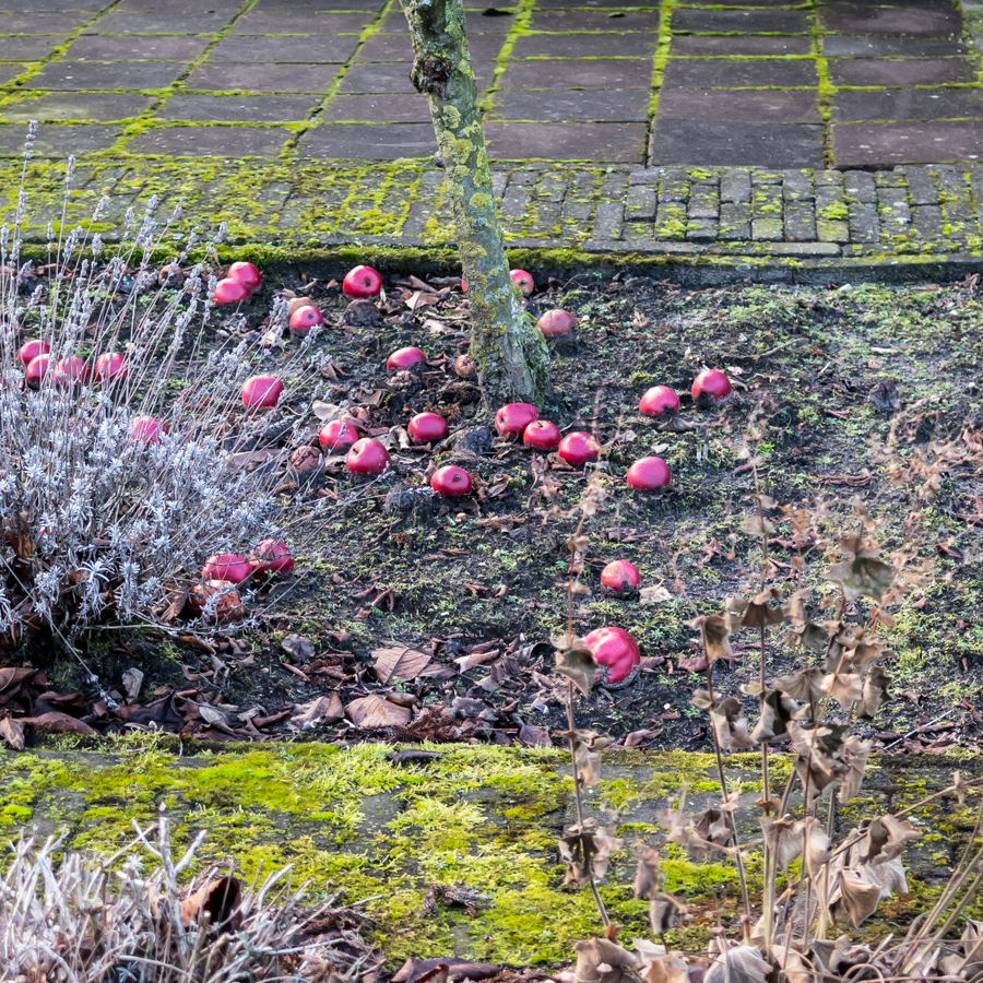 Al wandelend kwam ik in het begin van de week een beeld tegen dat een perfecte uitdrukking bleek van het gezegde: 'de appel valt niet ver van de boom'. Maar de foto, bleek, thuis achter de pc, niet van beste kwaliteit.