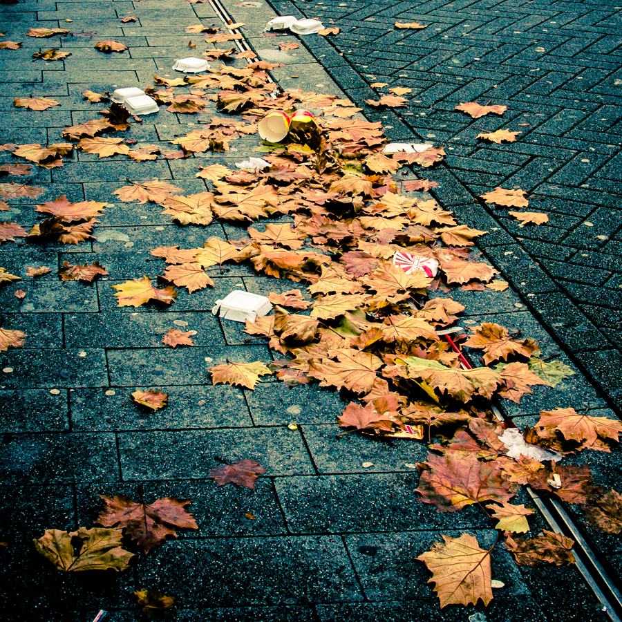 27 oktober 2013Vervolgens liep ik door de stad en kwam een helaas veelvuldig te zien beeld tegen van rotzooi wat na een uitgaansnacht achterblijft op straatHet thema van de afgelopen week luidde: straatscene. Daar kun je een hoop onder laten vallen. En dat blijkt ook wel uit de invulling die we als groepje aan hebben weten te geven.Een bijdrage van een van de andere projectgroepleden wil ik je niet onthouden. Met haar toestemming plaats ik haar foto hier.