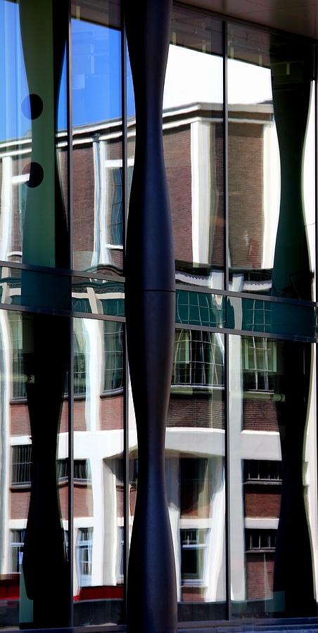 Niet alleen de binnenkant had fraaie elementen om vast te leggen, ook de gevel met vele glaselementen was mede door het mooie zonnige weer een geliefd fotografisch object.