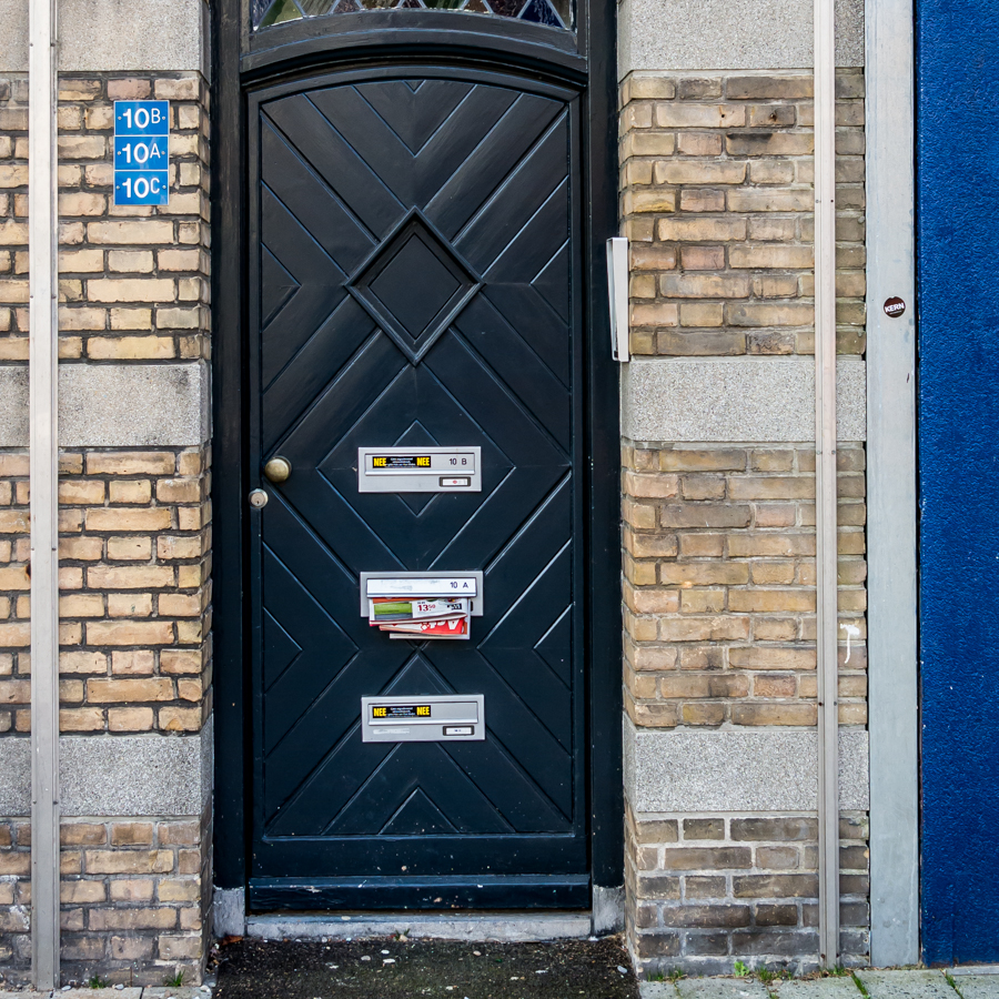 Hoeveel zien we er in ons leven? Hoeveel passeren, openen en sluiten we er? Teveel om bij te houden. En in het algemeen staan we - ik althans niet - er niet bij stil. Het thema van de afgelopen week - DEUREN - deed mij wel even met andere ogen kijken.Aanvankelijk wilde ik iets anders fotograferen dan 'een deur'. Dat lag zo voor de hand immers. Associaties met toegang, afsluiting, geborgenheid, veiligheid etc., ach er schiet genoeg door je hoofd maar een beeld had ik er telkens niet echt bij. Onderweg naar en voor het werk en andere gelegenheden lette ik wel meer op de deuren die ik zag. En zo ontstond langzaamaan een vaag idee wat een kleine serie foto's van/met deuren heeft opgeleverd uiteindelijk. Gewoon uit de losse pols, niet echt doordacht (dan zou ik er meer tijd aan moeten besteden, maar weet niet of ik dat wil ;-) ) en de foto's niet allemaal van de beste kwaliteit/compositie.