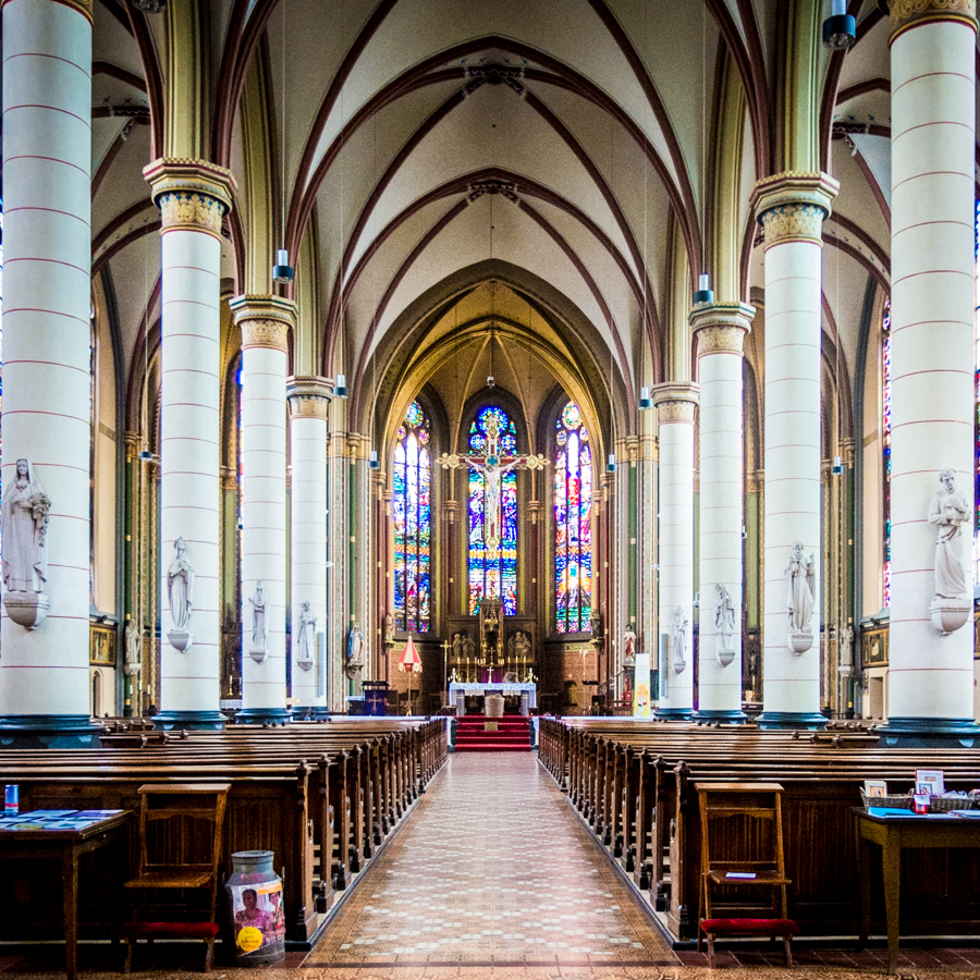 Het thema van de afgelopen week - religie - was een goede reden om in een van mijn middagpauzes de Lambertusbasiliek binnen te wandelen. Nou was ik daar wel eens vaker geweest hoor. Niet omdat ik kerkganger ben of zelfs maar 'behoor' tot een van de vele geloofsrichtingen die er zijn. Toen de kinderen klein waren was het een traditionele wandeling op eerste kerstdag om de grote kerststal te bekijken.