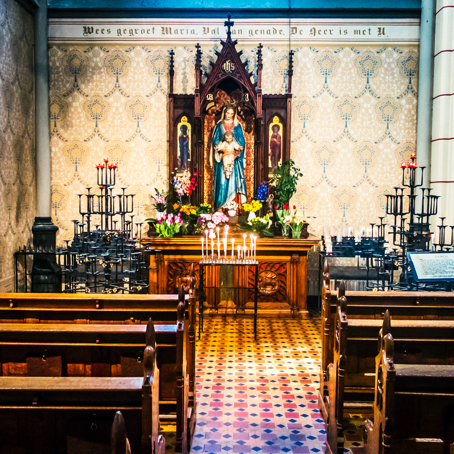 Het is overigens een prachtige basiliek in het hart van het Hengelose centrum. Al met al een prima onderwerp om een themafoto te maken leek me. Alleen de kapel bleek open op het moment dat ik er was. Maar dat was voldoende om mijn foto van de themaweek te maken en met een eigen 'tintje'.