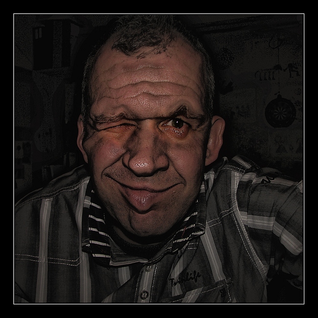 Foto 3 zorgde voor de nodige hilariteit. Waarom? Omdat het een sterkt bewerkt zelfportret was. Bewerkt in de stijl van Andrezj Dragan (http://andrzejdragan.com)