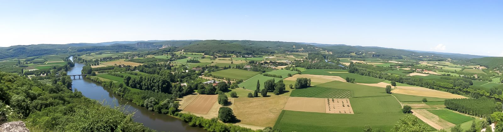 En deze keer weer een bonus in de vorm van een panoramafoto van het landschap in de Dordogne, genomen vanaf een uitkijkpunt in het dorpje Domme.