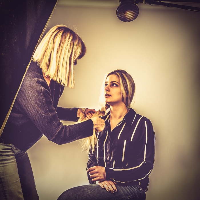 Het aardige is dat we deze avond deden bij een collega-fotoclub die zich alleen maar met deze vorm van fotografie bezighoudt. In de door hen ingerichte studio is alles zo'n beetje voorhanden. Dát en een korte uitleg over de do's en don'ts bij portretfotografie, het vooraf instellen van de lampen/flitsers maakte het al wat gemakkelijker. Als er dan ook nog 3 prachtige jonge modellen zijn die het helemaal niet erg vinden/vonden om voor de camera te staan dan kan het al bijna niet meer mislukken.